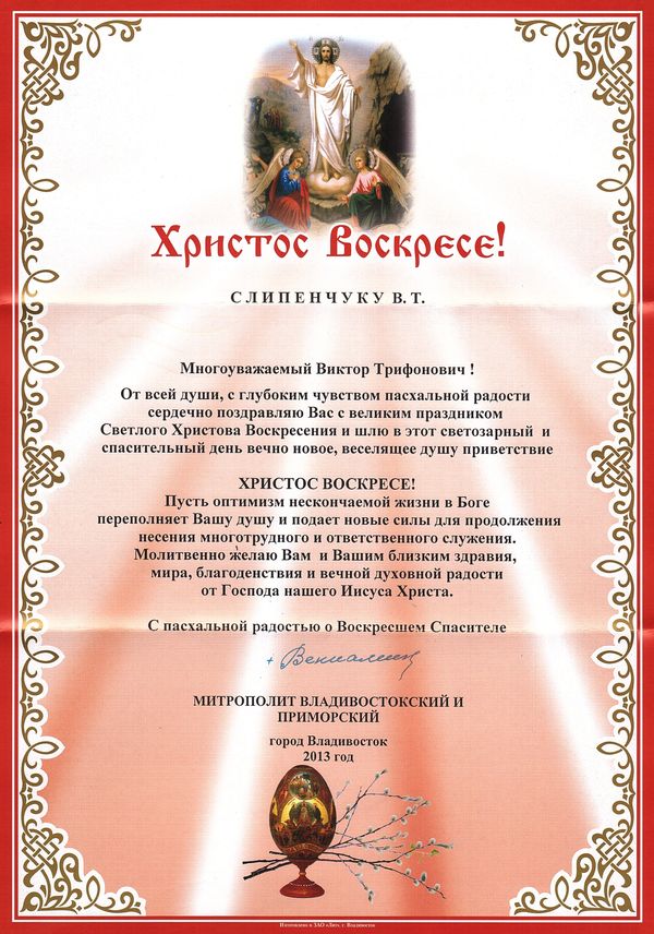 05.05.2013   Имя: Митрополит Владивостокский и Приморский Вениамин (г.Владивосток)