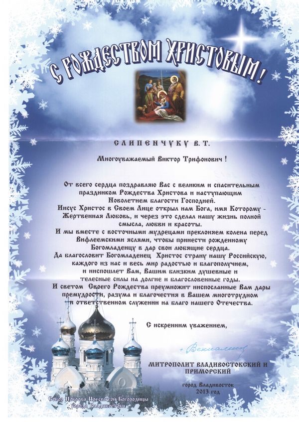 07.01.2013   Имя: Митрополит Владивостокский и Приморский Вениамин (г.Владивосток)