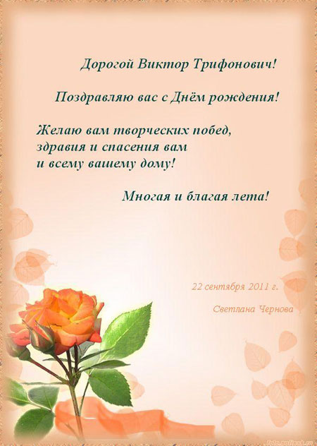 Дорогие мои Виктор Трифонович и Галина Михайловна! Поздравляю Вас! Здоровья и счастья!