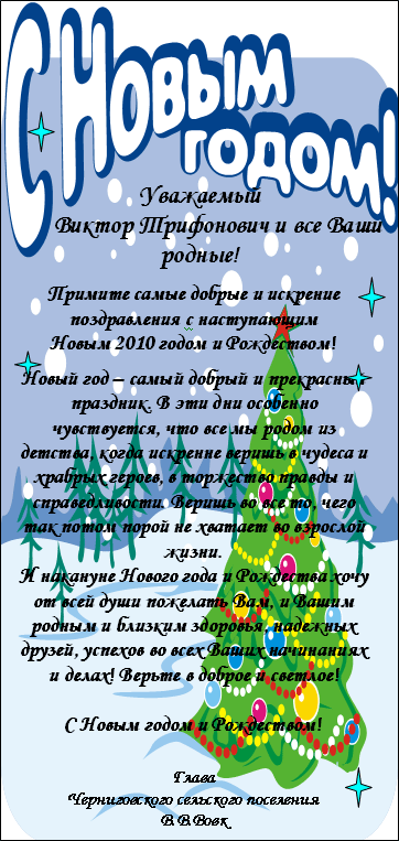 Ваше Боголюбие Виктор Трифонович Слипенчук и все Ваши домочадцы!