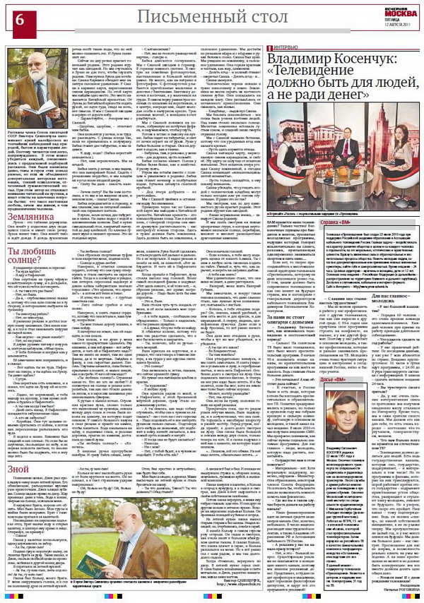 «ВЕЧЕРНЯЯ МОСКВА», №149 (25664), короткие рассказы, 12 августа 2011 года
