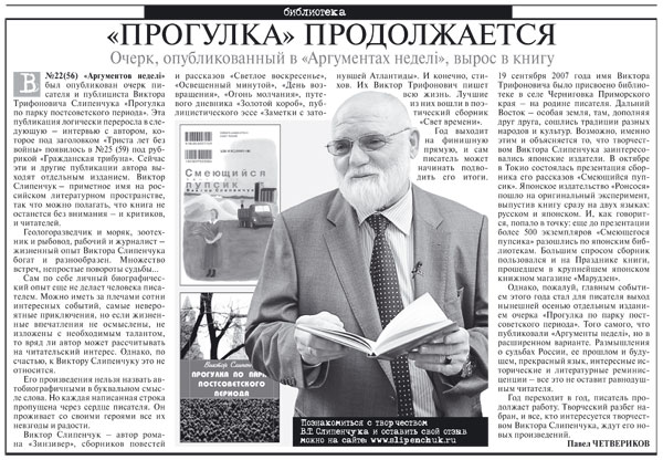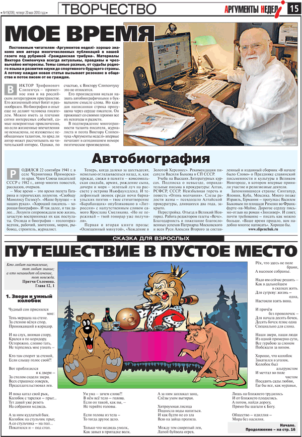 АРГУМЕНТЫ НЕДЕЛI, №25 (417), статья о выходе книги В.Т. Слипенчука «Путешествие в Пустое место» — издательство «Эксмо» 10.07.2014