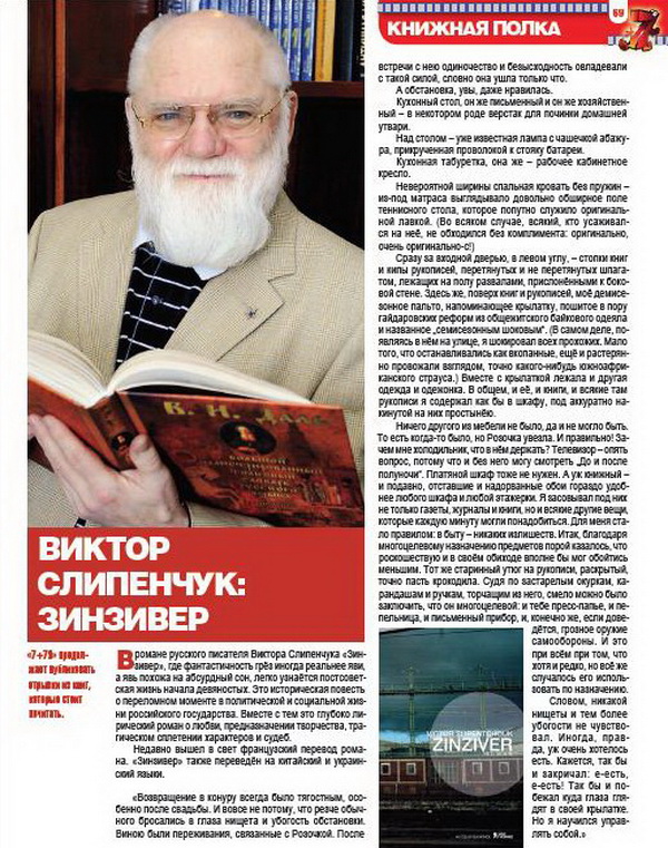 Агентство СИНЬХУА (russian.news.cn): В Китае выпущен роман российского писателя В. Слипенчука "Зинзивер" на китайском языке, 28.10.2009
