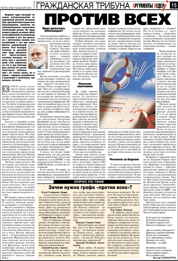 АРГУМЕНТЫ НЕДЕЛI, № 5 (195), статья «Против всех», 11 февраля 2010 года
