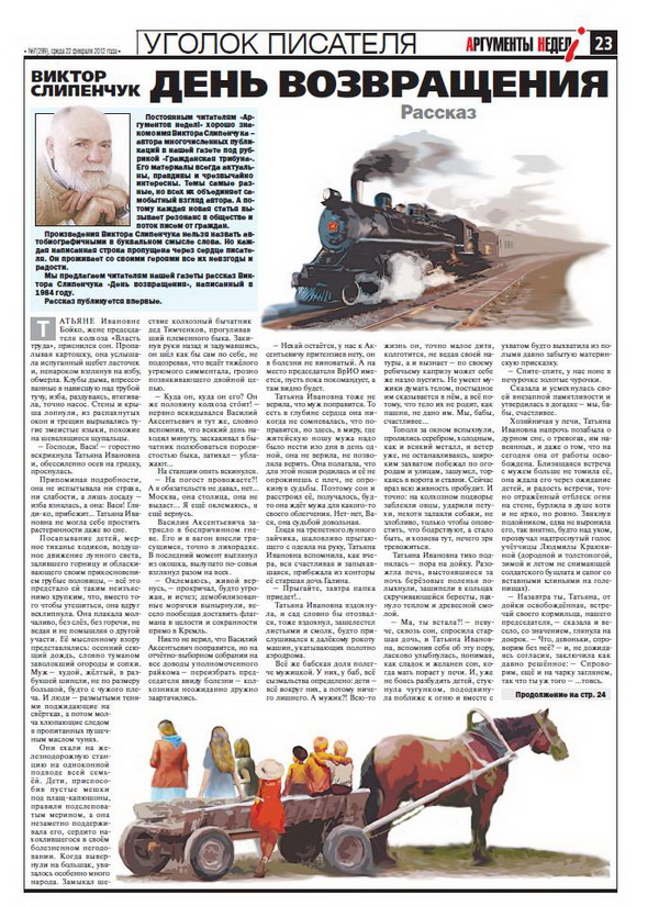 АРГУМЕНТЫ НЕДЕЛI, №7 (299), рассказ «День возвращения», 22 февраля 2012 года