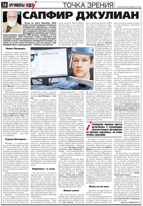 АРГУМЕНТЫ НЕДЕЛI, № 7 (248), статья «Сапфир Джулиан», 22 февраля 2011 года
