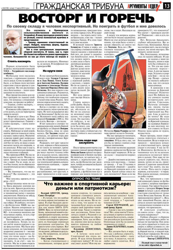 АРГУМЕНТЫ НЕДЕЛI, № 9 (199), статья «Восторг и горечь», 11 марта 2010 года