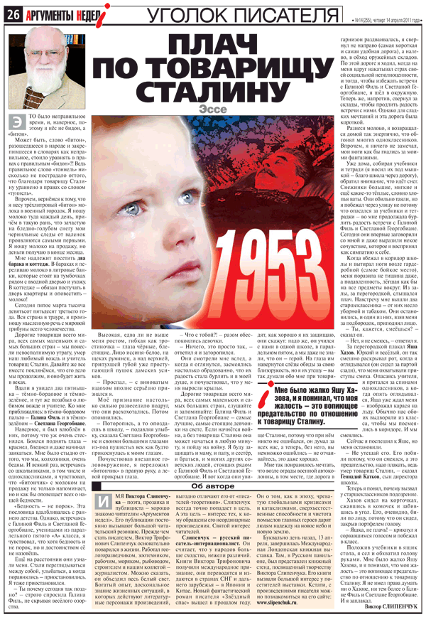АРГУМЕНТЫ НЕДЕЛI, № 14 (255), эссе «Плач по товарищу Сталину», 14 апреля 2011 года