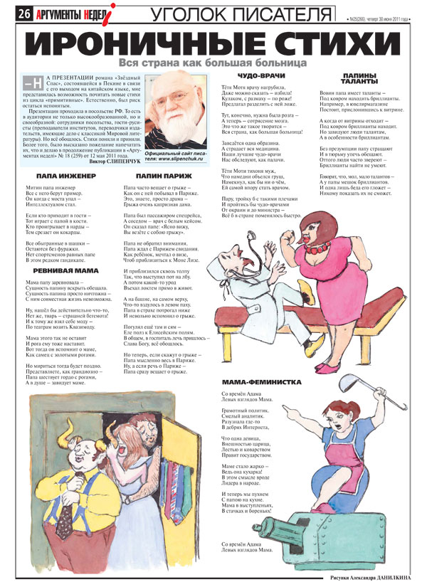 АРГУМЕНТЫ НЕДЕЛI, № 25 (266), «Ироничные стихи», 30 июня 2011 года