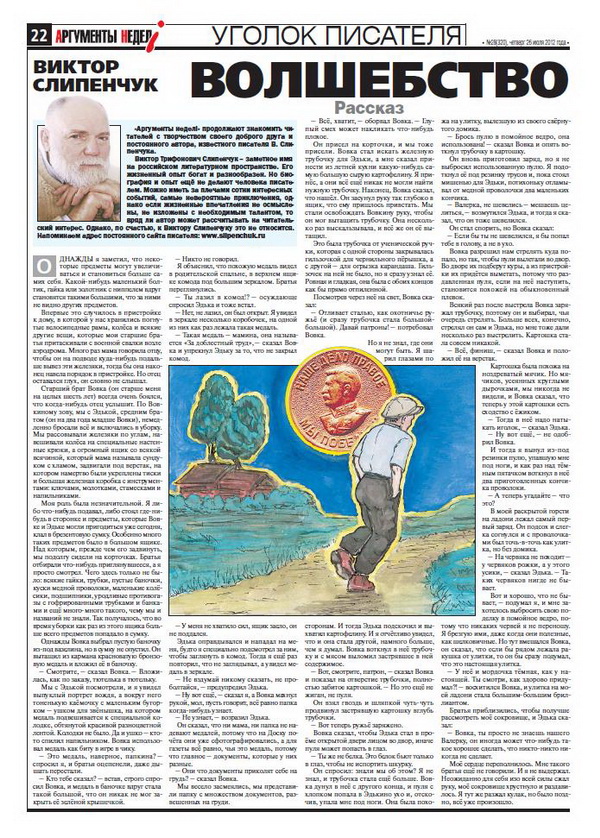 АРГУМЕНТЫ НЕДЕЛI, № 28 (320), рассказ «Волшебство вещей», 26 июля 2012 года