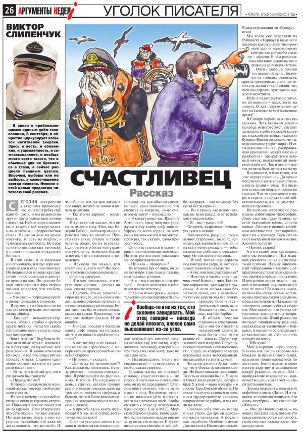 АРГУМЕНТЫ НЕДЕЛI, № 34 (376), рассказ «Счастливец», 5 сентября 2013 года