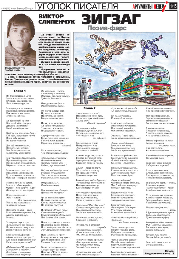 АРГУМЕНТЫ НЕДЕЛI, № 36 (378), поэма «Зигзаг», 19 сентября 2013 года
