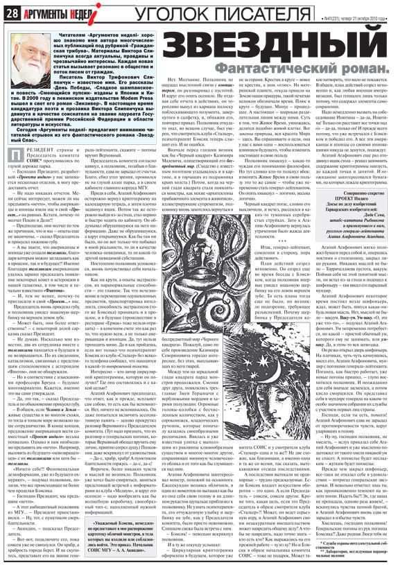 АРГУМЕНТЫ НЕДЕЛI, № 41 (231), фрагмент фантастического романа «Звёздный Спас», 21 октября 2010 года