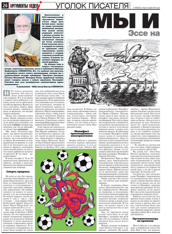 АРГУМЕНТЫ НЕДЕЛI, № 46 (236), эссе «Мы и время», 25 ноября 2010 года