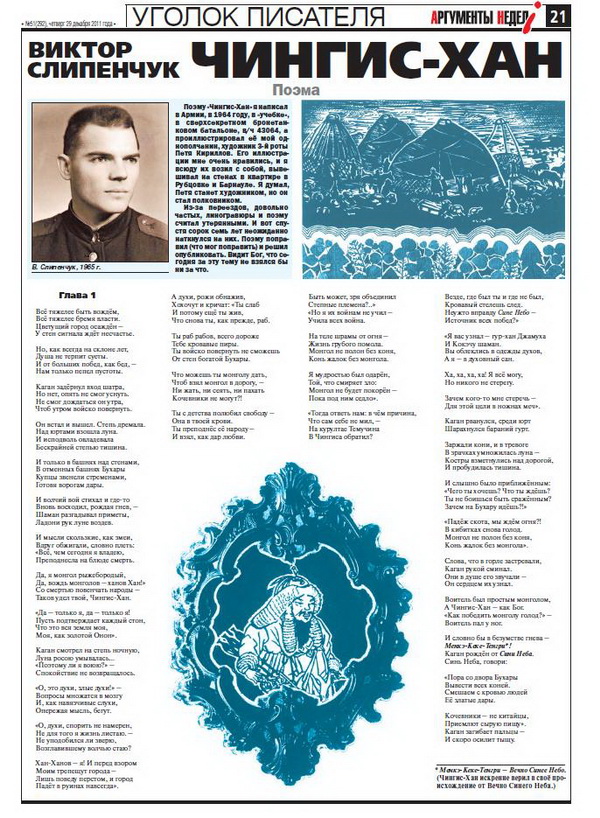 АРГУМЕНТЫ НЕДЕЛI, №51 (292), поэма «Чингис – Хан», 29 декабря 2011 года