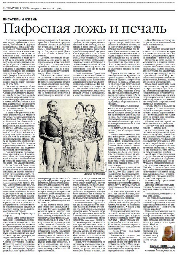 «Литературная газета», № 17 (6367), статья «ПАФОСНАЯ ЛОЖЬ И ПЕЧАЛЬ», 25 апреля 2012 года