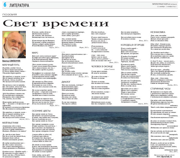 «Литературная газета», № 38 (6431), подборка стихов «Свет времени», 25 сентября 2013 года