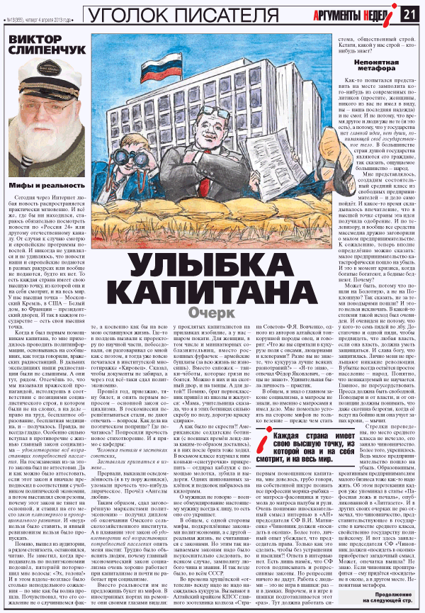 АРГУМЕНТЫ НЕДЕЛI, № 13 (355), очерк «Улыбка капитана», 4 апреля 2013 года