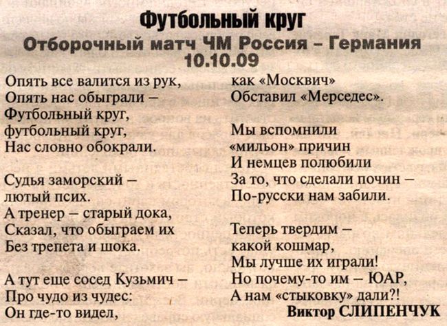 АРГУМЕНТЫ НЕДЕЛI, № 42 (180), стихотворение «Футбольный круг», 22 октября 2009 года