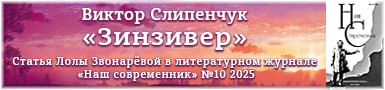 В литературном журнале «Наш современник» (№10 2025 г.) в рубрике «Книжный обзор» опубликована статья Лолы Звонарёвой «Тайны русской души в переводе на английский, или ключ к нашему будущему» о романе Виктора Слипенчука «Зинзивер» на английском языке.
