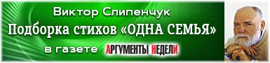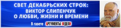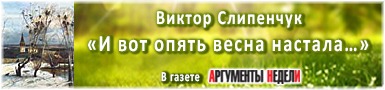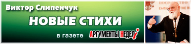 24.09.2025Газета «Аргументы Недели» (№38(986), 24 - 30 сентября 2025 г.) поздравила Виктора Трифоновича Слипенчука с днём рождения и опубликовала подборку его стихов.