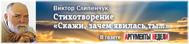 Смотреть здесь. 30.12.2025В газете «Аргументы Недели» (№52(1000), 30 декабря 2025 г. - 13 января 2026 г.) опубликовано новое стихотворение Виктора Слипенчука «Скажи, зачем явилась ты...».
