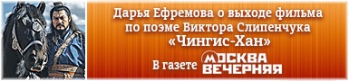 Читать здесь 09.07.2025В газете «Москва вечерняя» (№70(1770) 26 июня 2025 г.) опубликована статья Дарьи Ефремовой «А нейросеть теперь и фильмы снимает» о выходе в прокат фильма по поэме Виктора Слипенчука «Чингис-Хан».