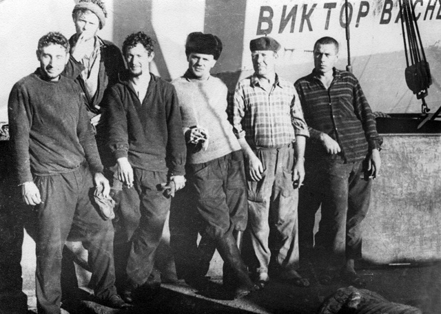Ванкуверо-Орегонская банка. БМРТ «50 лет ВЛКСМ», 1971 г. | |  БМРТ «Надеждинск», на фоне сухогруза «Виктор Васнецов». Императорская банка, 1972 г. | |  Залив «Америка». На рейде. Находка, 1973 г. |