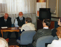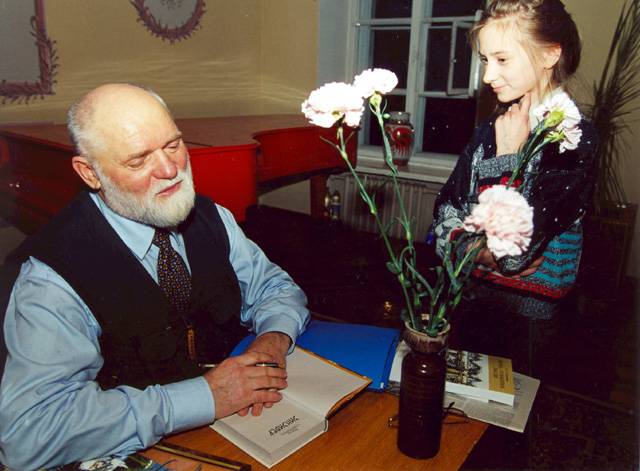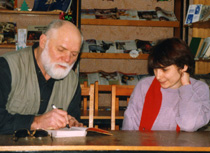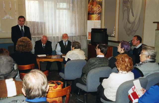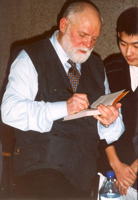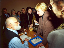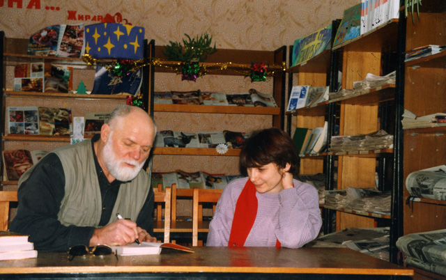 Встреча с читателями в областной библиотеке. Великий Новогород, 2001 г. | |  Встреча с читателями в областной библиотеке. Автограф читательнице. Великий Новогород, 2001 г. | |  Шишковка. Автограф читателю, г. Барнаул, 2001 г. |