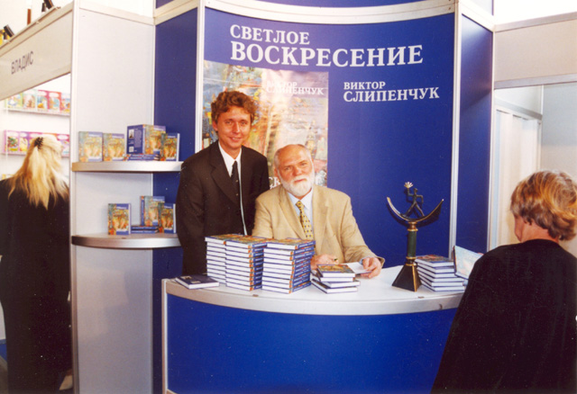 Стенд издательства ВАГРИУС. Московская книжная ярмарка, 2001 г. | |  «Светлое воскресение», издательство «Городец». Международная книжная ярмарка, Москва, 2002 г. | |  А.Треушников, В.Слипенчук на стенде издательства «Городец». Международная книжная ярмарка, Москва, 2002 г. |