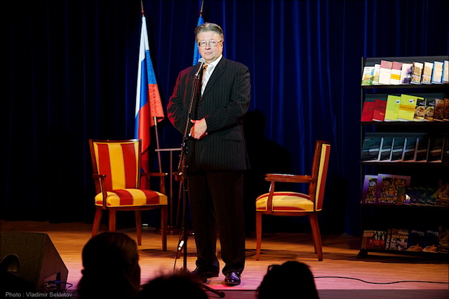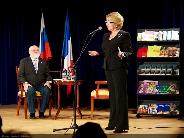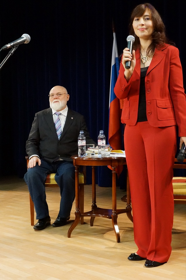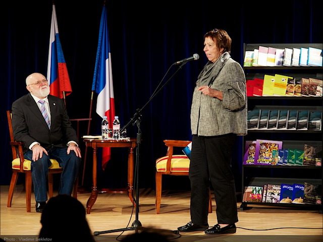 Каминный зал РЦНК. Жерар Коньё, Виктор Слипенчук, Игорь Шпынов | |  Постоянный представитель РФ при ЮНЕСКО Э.В. Митрофанова делится впечатлениями о романе | |  Обмен мнениями |