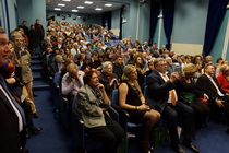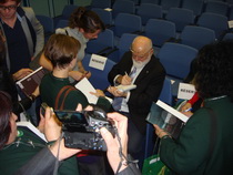 Зал полон | |  | |  В.Т. Слипенчук подписывает книги читателям |