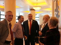 Интервью корреспонденту ИТАР-ТАСС Юрию Денисовичу | |  Стенд с книгами В.Т. Слипенчука | |  Фото на память | | |