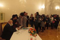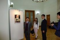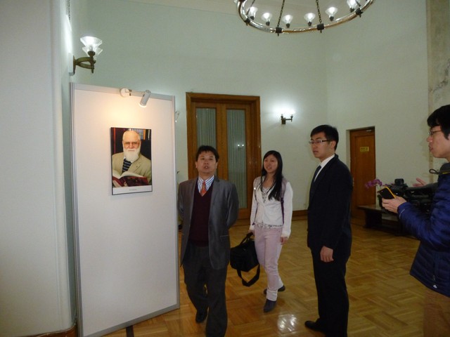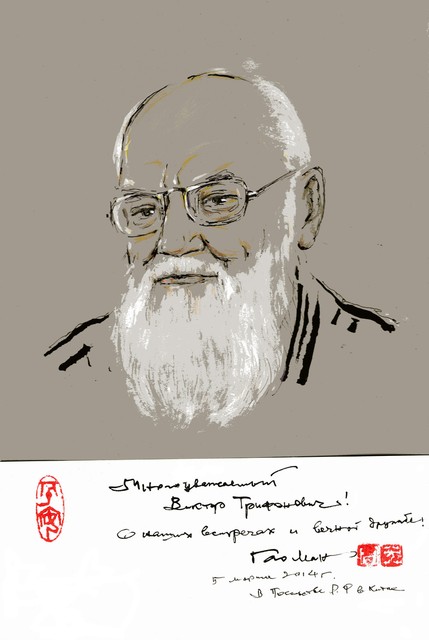 Выдающийся переводчик русской и советской литературы, почётный член Российской Академии художеств и Союза писателей России Гао Ман дарит портрет автора на память