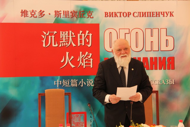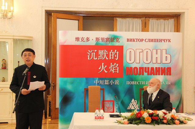 Директор издательства «Народная литература» Гуань Шигуан рассказывает об изданиях книг В.Т. Слипенчука на китайском языке