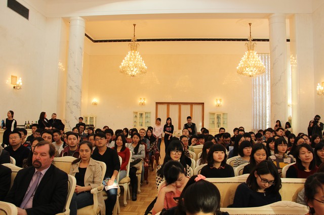 Аудитория тепло встретила стихотворение автора на китайском языке. Исполнитель и переводчик – Д.Я. Палецкий
