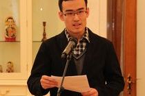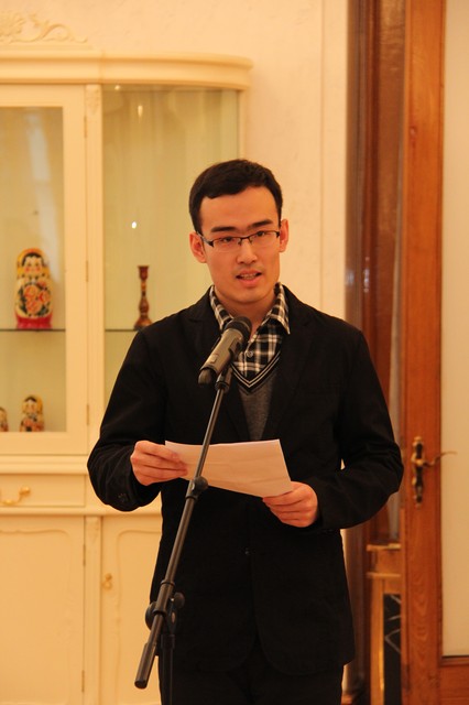 Студент Пекинского университета иностранных языков Вэнь Гохуэй читает на русском языке отрывок из рассказа Виктора Слипенчука «Сладкое шампанское»