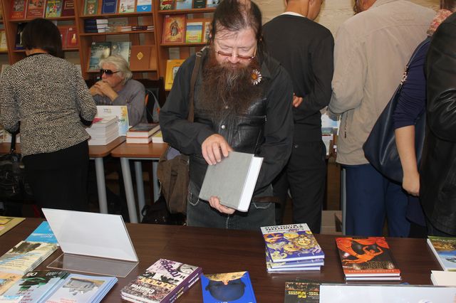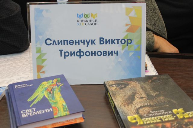 Посетители салона знакомятся с новыми изданиями Виктора Слипенчука