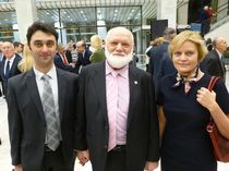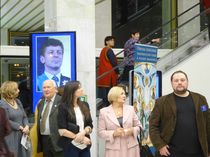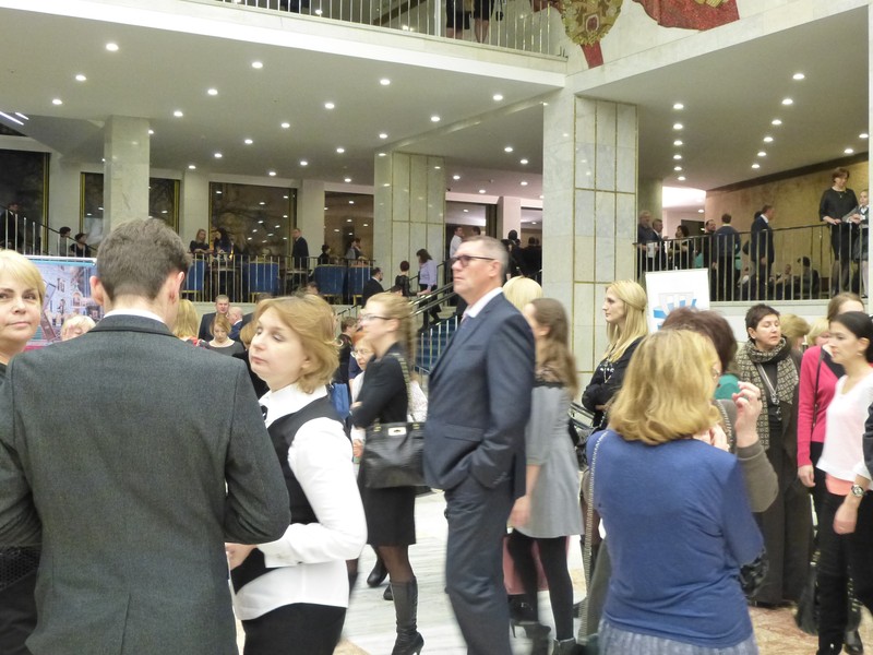 Сергей Чиченев, Виктор Слипенчук и Екатерина Власова в вестибюле Государственного Кремлёвского Дворца