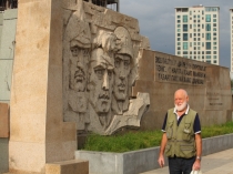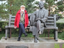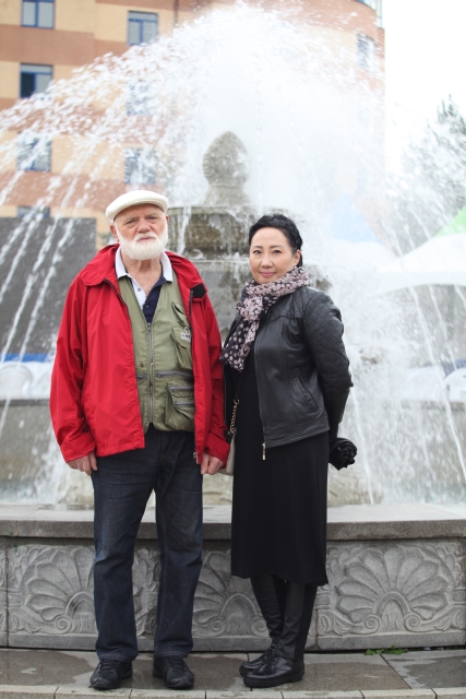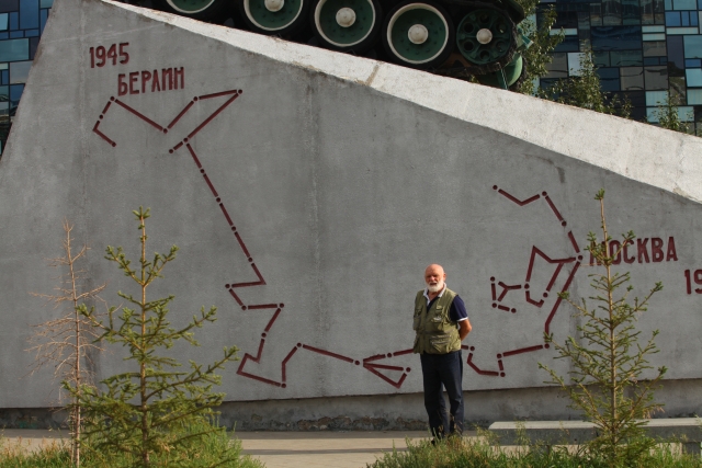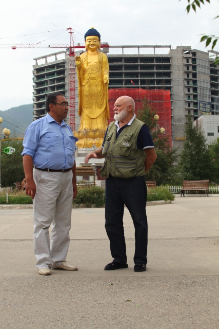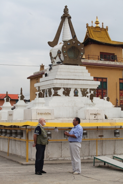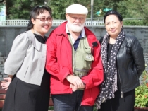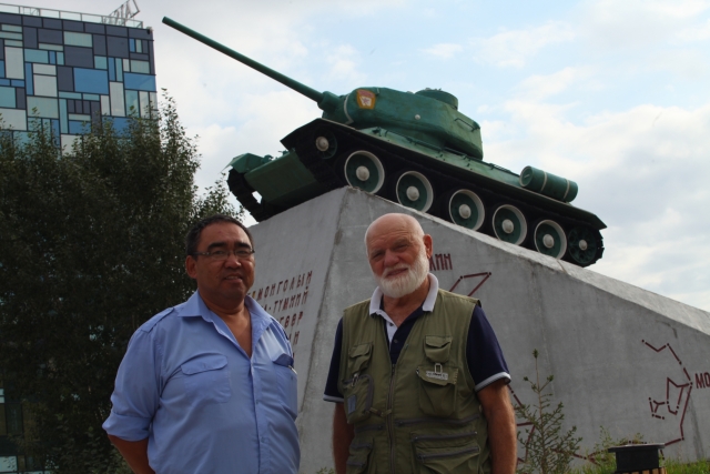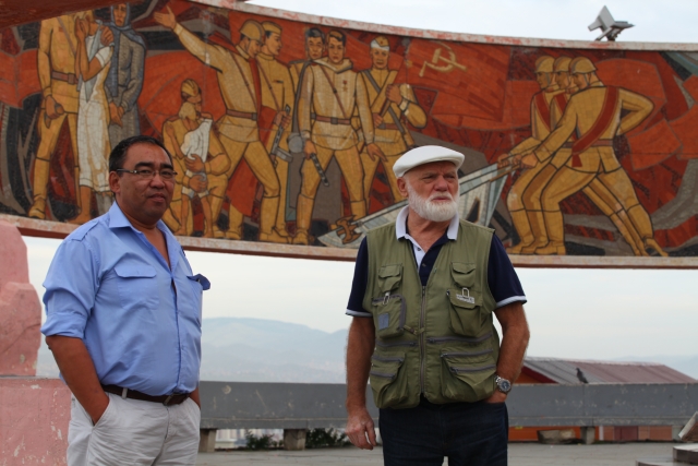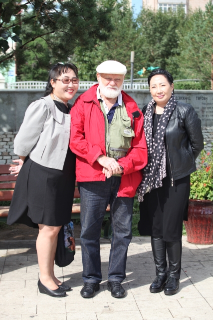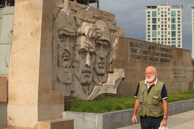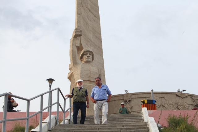 Посещение памятника советским воинам. Писатель Виктор Слипенчук и Алтангэрэл Дамба (руководитель проекта издания книг В.Т. Слипенчука в Монголии)