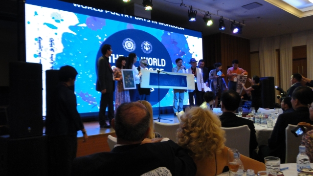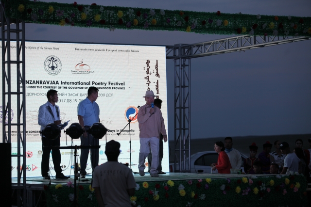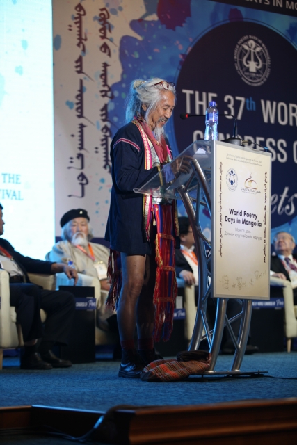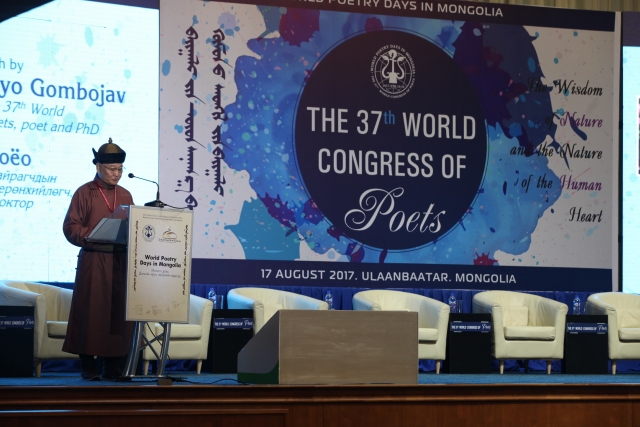 Президент союза писателей Монголии г-н Г.Мэнд-Ооёо открывает Всемирный конгресс поэтов