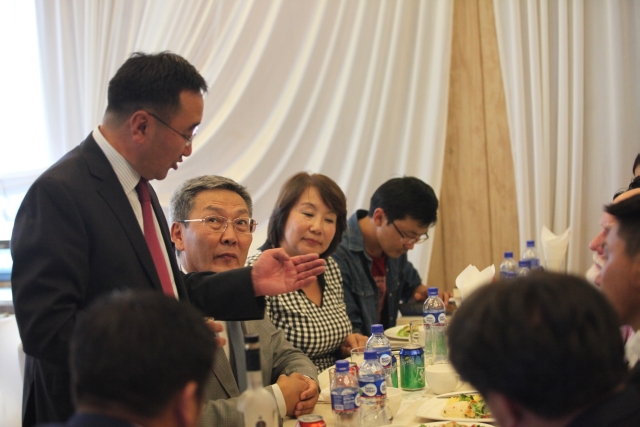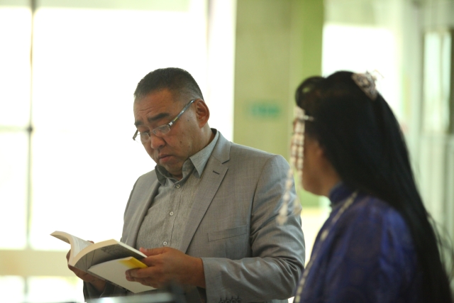 Дом правительства. Писатели Улугбек Есдаулетов и Виктор Слипенчук, Мэргэн (переводчик), Алтангэрэл Дамба