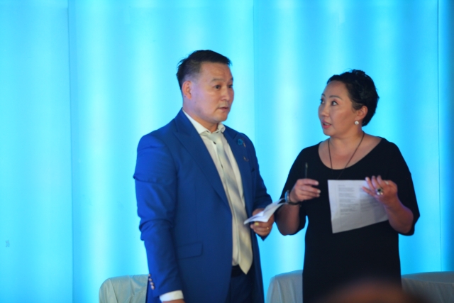 Советник-посланник Рыгзын Ракшаев с женой Ольгой и Виктор Слипенчук   Господин Л.Пурэвсурэн - о презентации   Главный редактор газеты "Информ Полис" (Бурятия) Туяна Зондуева